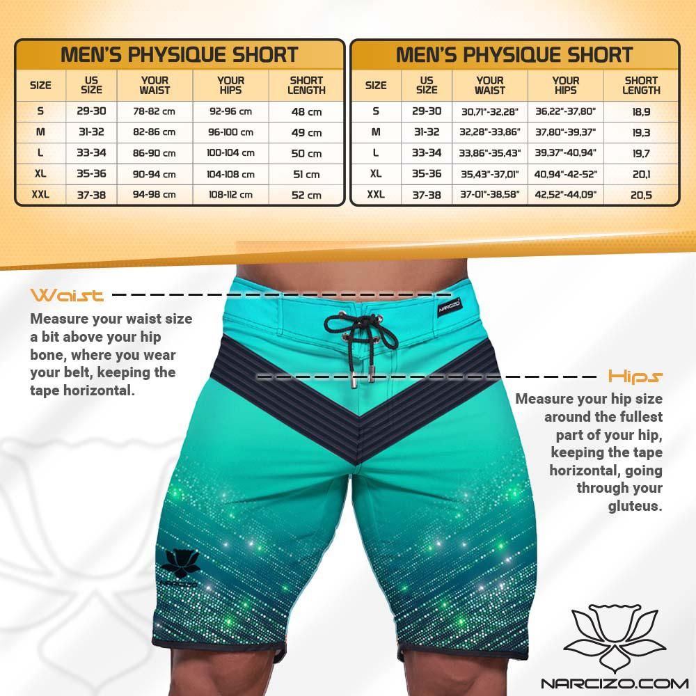 Spodenki startowe do Men’s physique (fitness plażowe) Turquoise Phantom 19″